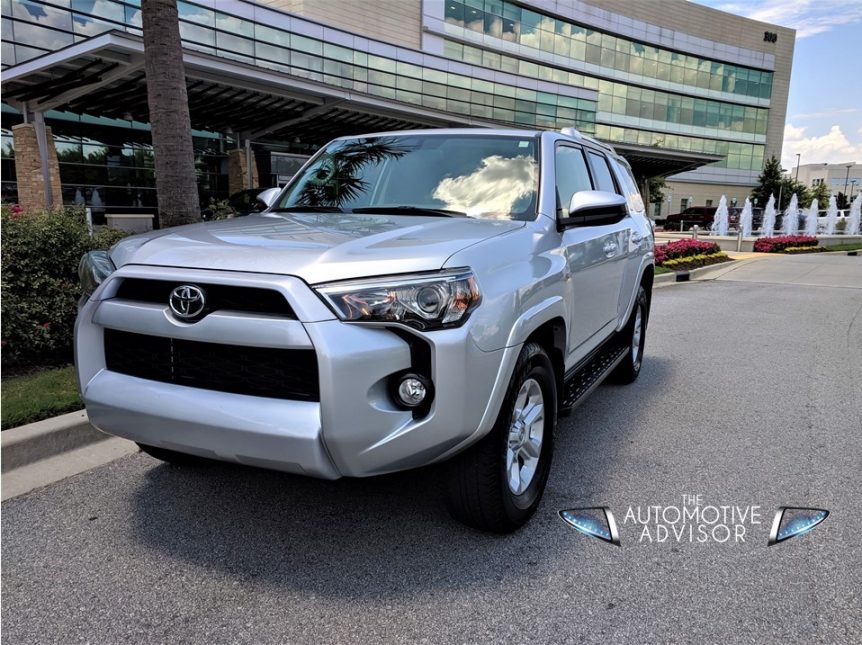 2018 Toyota 4Runner SR5 in Classic Silver Metallic with Black Graphite fabric seats. Equipped with navigation; Bluetooth; AM|FM|CD|SXM|HD|MP3 and Auxiliary Audio input; Cruise Control; steering wheel mounted audio and cruise controls; daytime running lights; power locks/windows/mirrors; keyless entry; power driver’s seats with two-way lumbar support; and, rear seat center armrest.